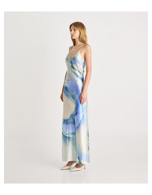 Satin Maxi Dress - Print Blue