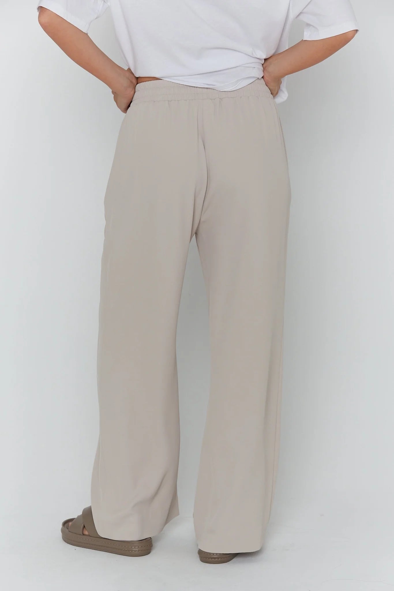 Stay comfy with the PENTAGON pants in Stone. Stylish details such as the pin stitch front and medium-weight fabric make it easy to dress up into a semi-formal look. At the same time, its wide-leg silhouette, elastic waistband, and drawstring tie will keep you comfortable and feeling laidback all day.